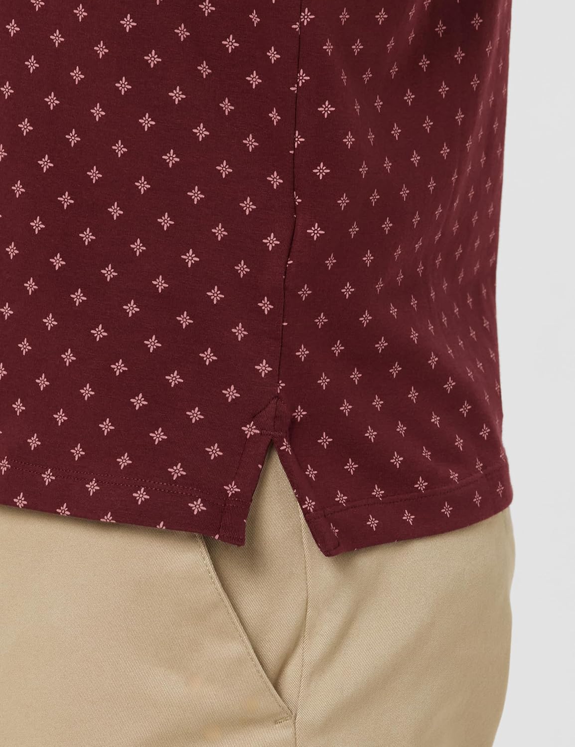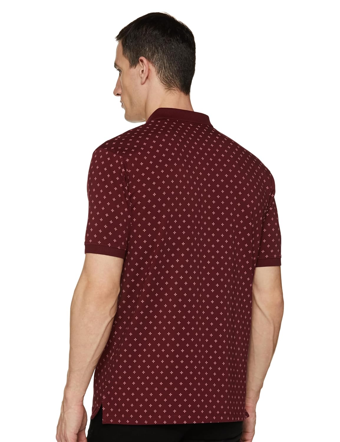This Maroon Polo Neck Half Sleeves T-shirt from Peter England is made from 95% Cotton and 5% Spandex. Fashioned in Regular Fit it features a Print design.