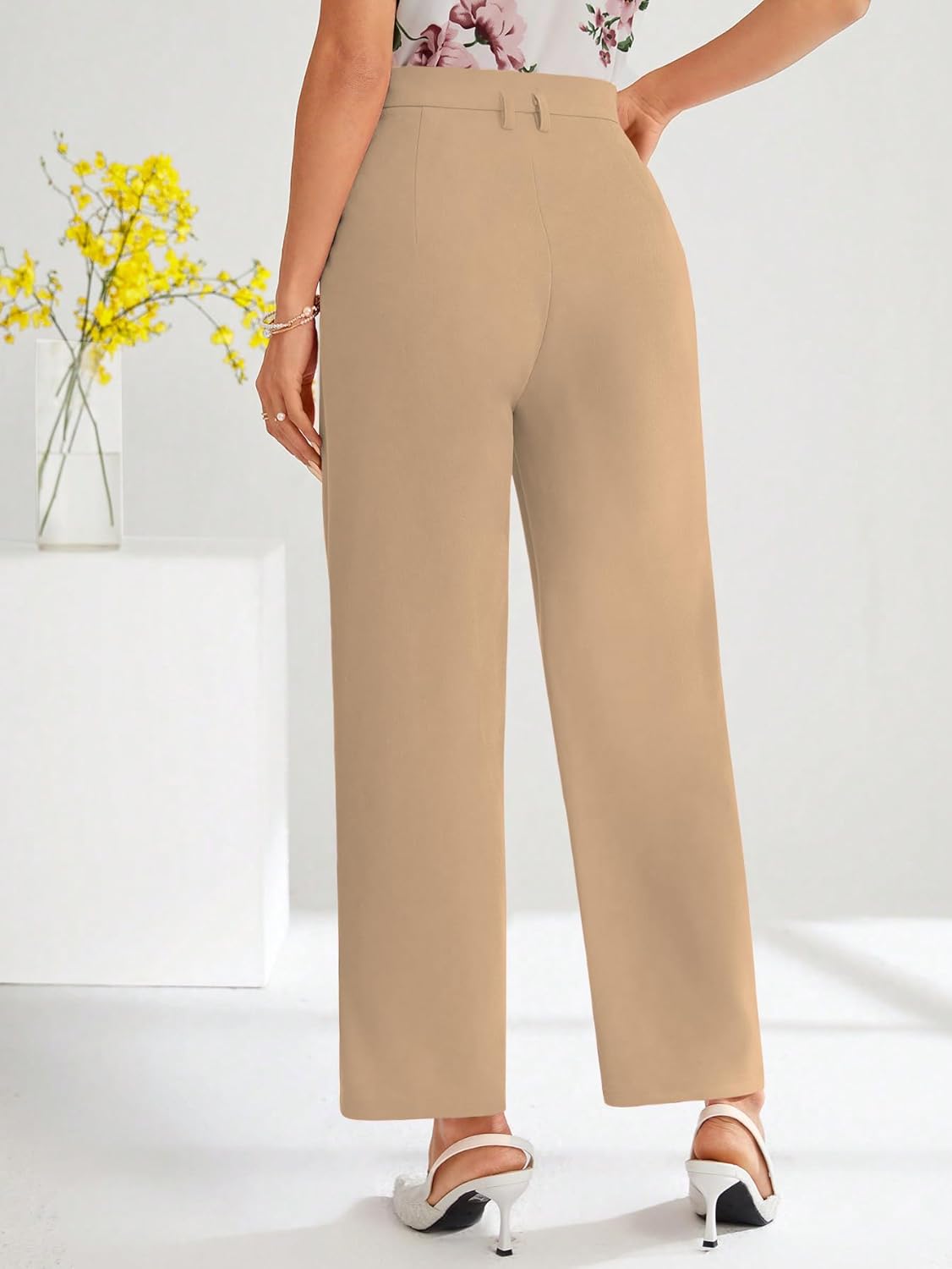 Shasmi Women’s High Waist Pleated Straight Leg Trousers – Elegant Solid Color Work Pants with Pockets, Casual Office Wear Polyester Wide Leg Pants