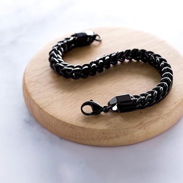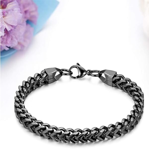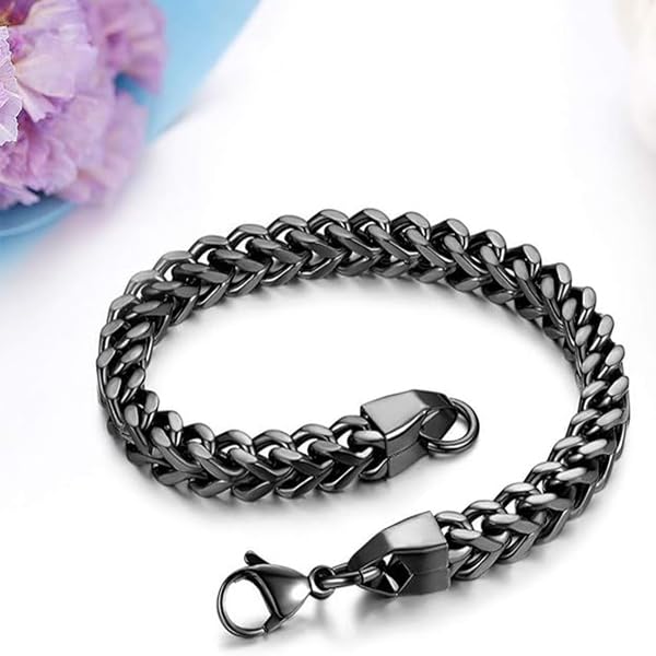 Zibuyu® Cuban Chain Bracelet for Man, Stainless Steel Hand Bracelet for Men Fashion Accessories, Hip-Hop Punk Style Jewelry for Street wear and Casual Outfits, Jewelry Gift(Silver&Black)